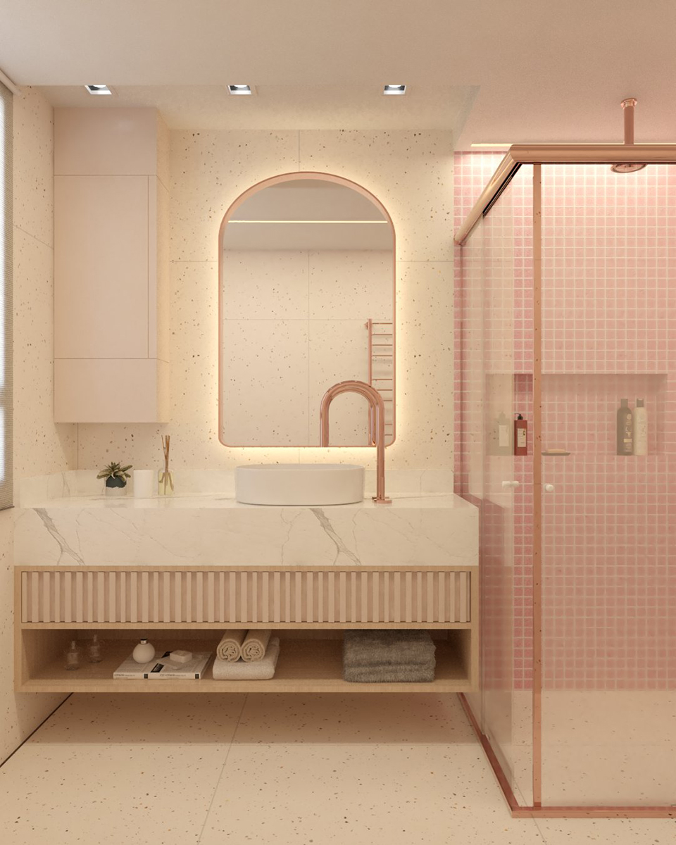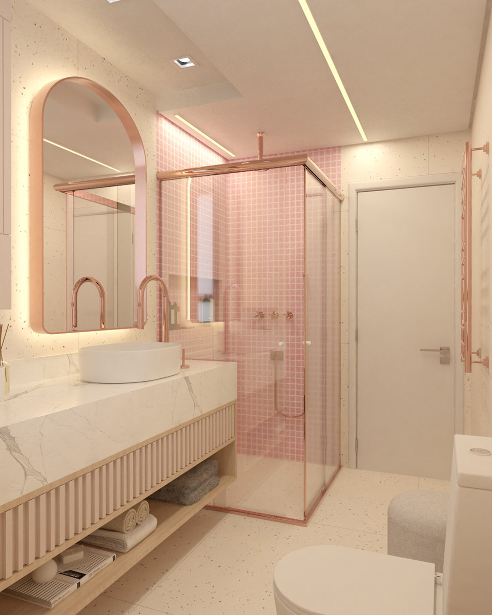 O projeto da Suíte Alice, desenvolvido em parceria com a Arquiteta Ketlyn Sampaio (@arquiteta.ketlyn), nasceu no Morumbi com o propósito de traduzir o universo delicado e cheio de personalidade de uma jovem bailarina de 14 anos. A proposta equilibra elementos clássicos e contemporâneos, trazendo uma paleta suave de tons rosa e nude, que transmite tranquilidade e acolhimento logo ao entrar no ambiente. 🩰🌼